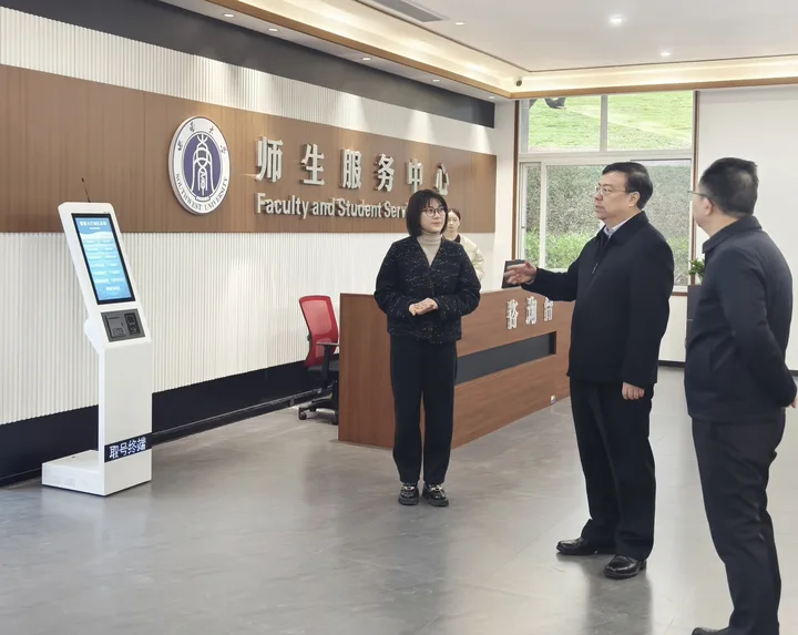 2025年11月25日上午,校长、党委副书记王进军带队深入师生服务中心检查指导工作。