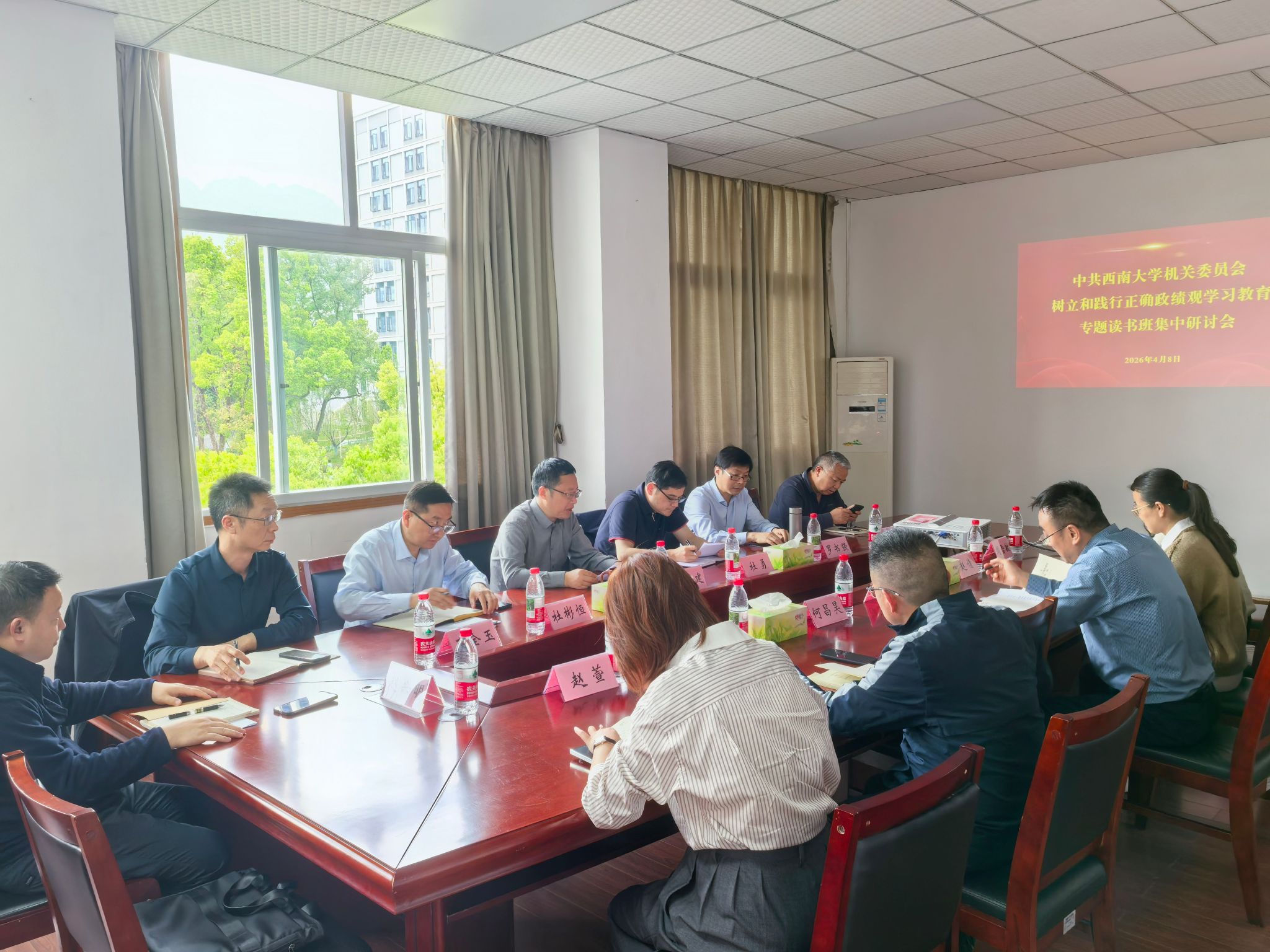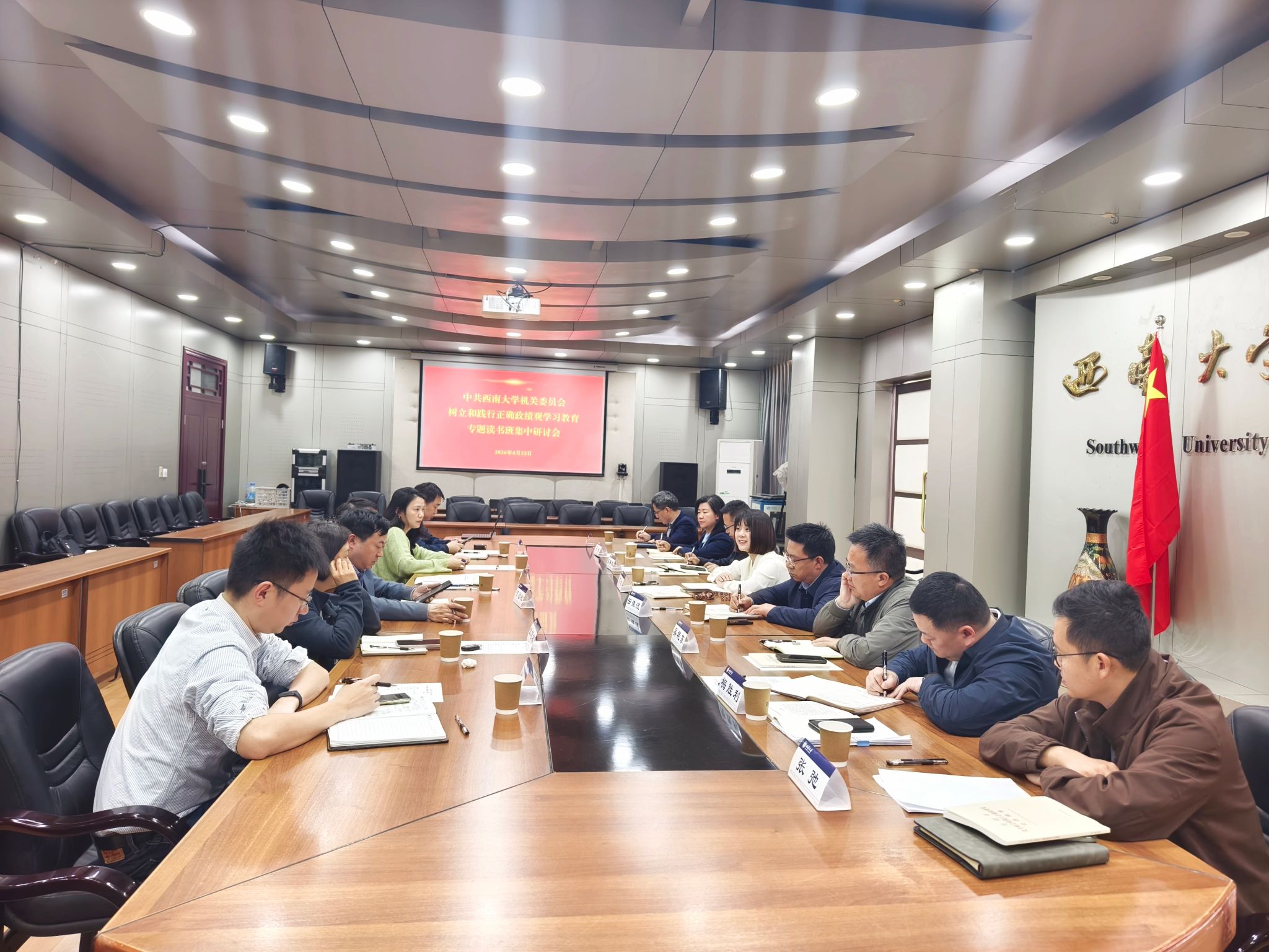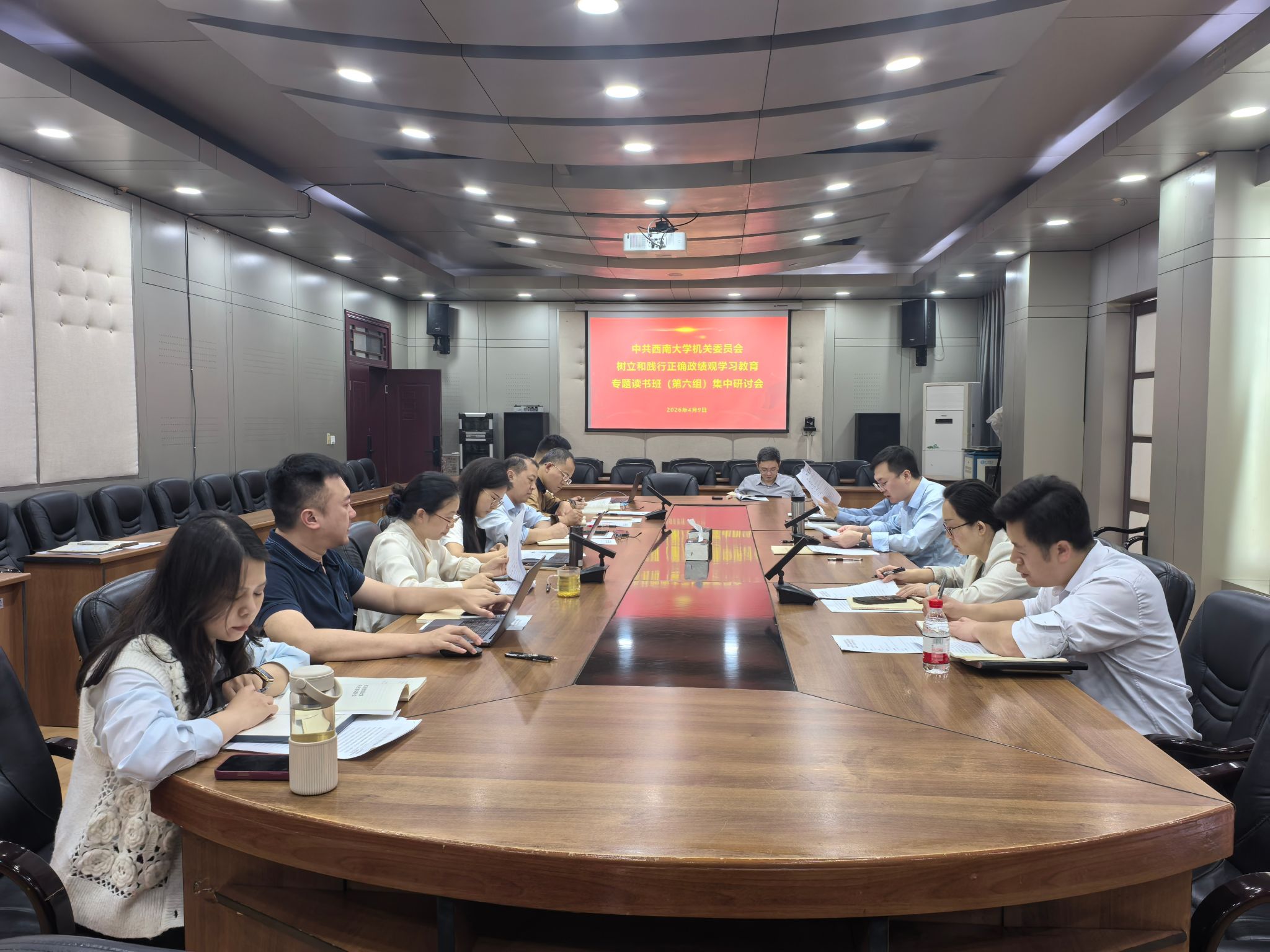 读书班采取个人自学、专家辅导、分组学习研讨相结合的方式进行。机关党委所辖各党支部全体处级领导干部原原本本学习了《习近平关于树立和践行正确政绩观论述摘编》,集中听取了专题辅导报告,分七个小组围绕“政绩为谁而树、树什么样的政绩、靠什么树政绩”这一根本问题,结合学校年度重点任务和部门工作实际,深入开展交流研讨。大家在深学细悟中升华思想,在互学互鉴中凝聚共识,进一步厘清了思想认识,明确了实践方向,增强了树立和践行正确政绩观的政治自觉、思想自觉、行动自觉。