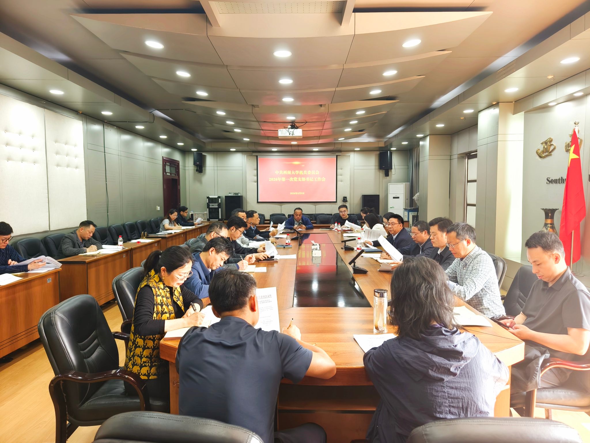 4月9日,机关党委在文俊楼311会议室召开2026年第一次党支部书记工作会。机关各党支部书记参加会议。